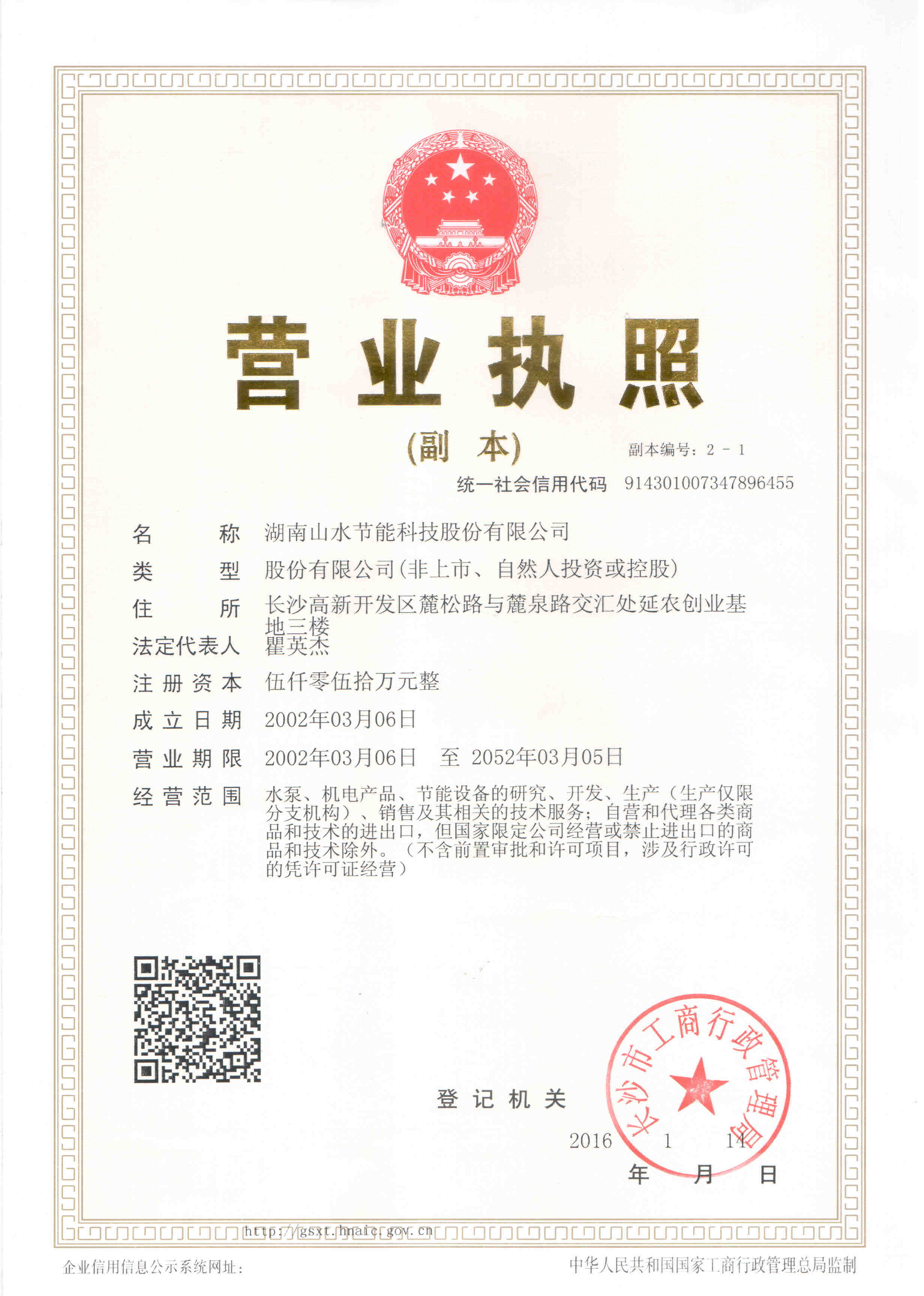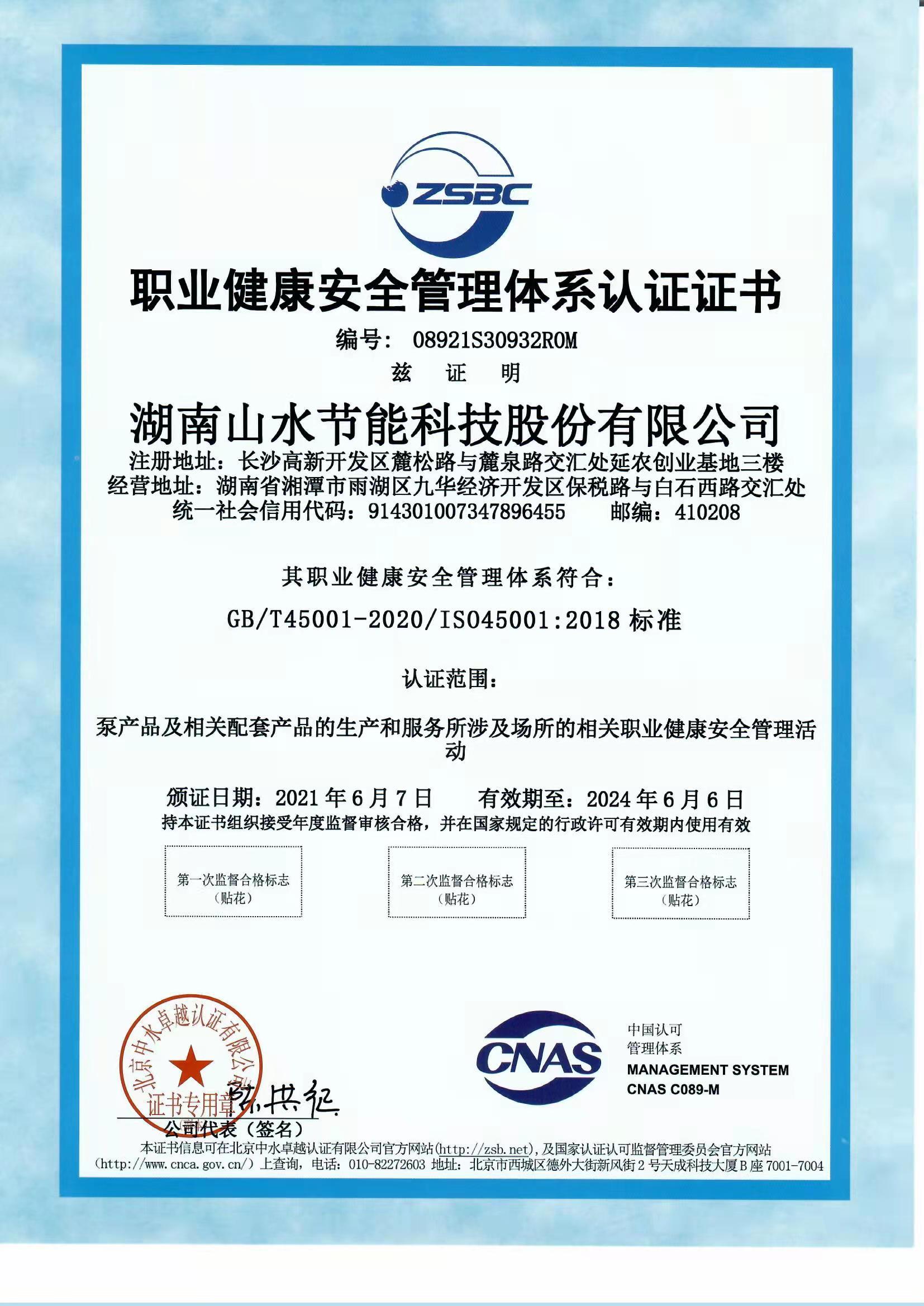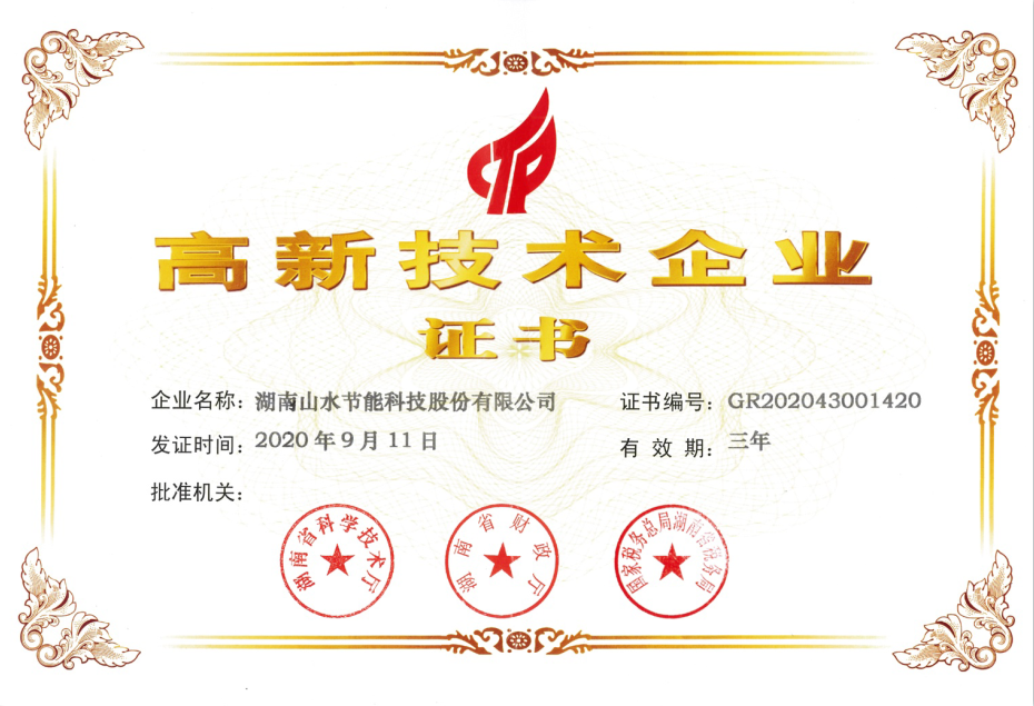 山水节能通过ISO9000、ISO14001环境体系认证、节能产品认证、节能服务资格认证、安全生产标准化认证;拥有中国石油一级物资供应商资格、中国石化物资供应商资格等。