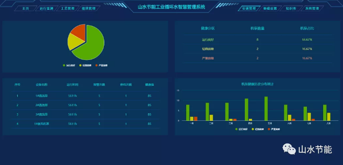 安康管理:实时采集设备运行数据进行分析,评估设备健康状态,提出维修保养建议,形成健康报告。同时进行设备故障诊断,确定故障类型,提出维修意见和设备备件管理。