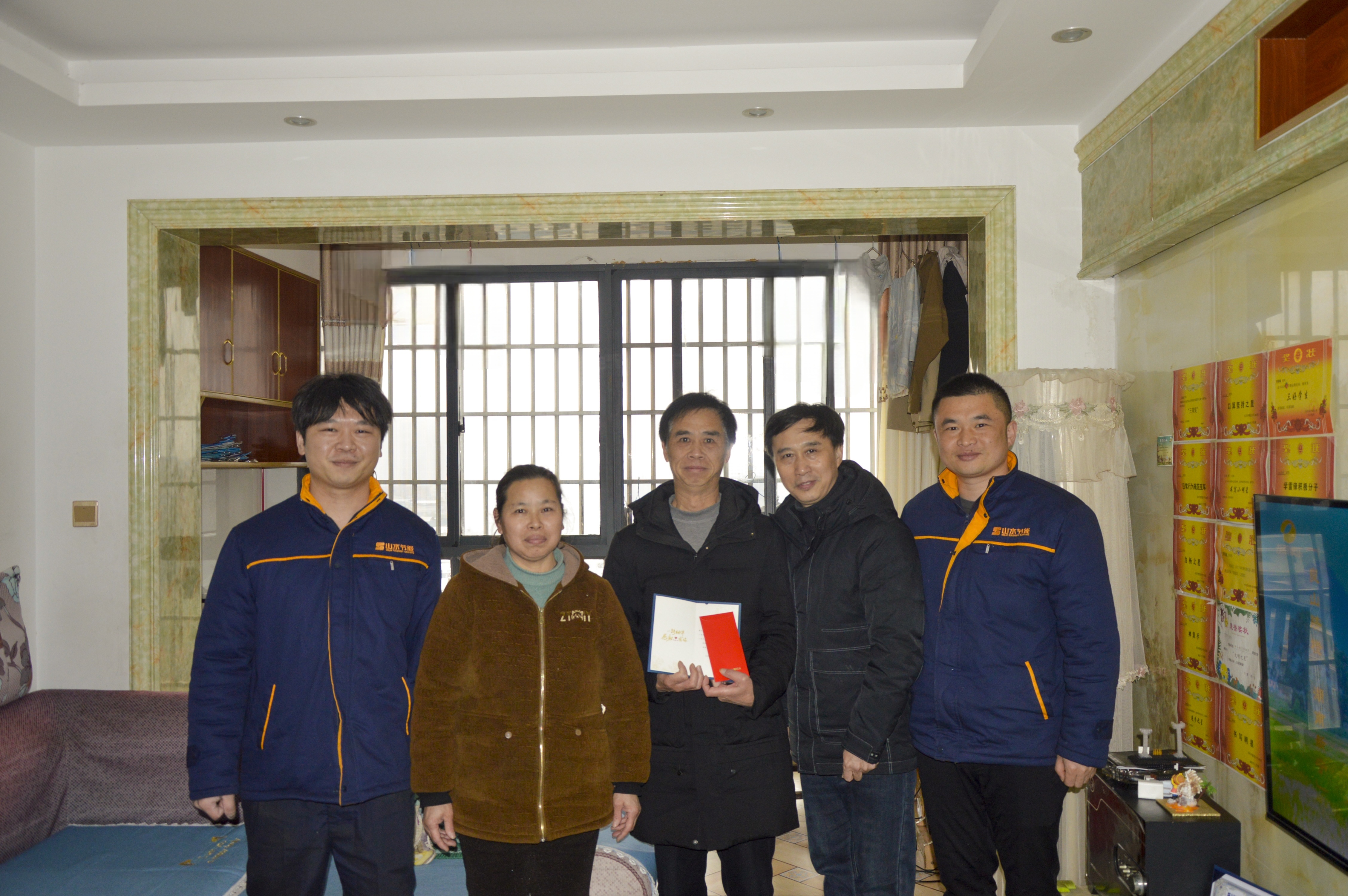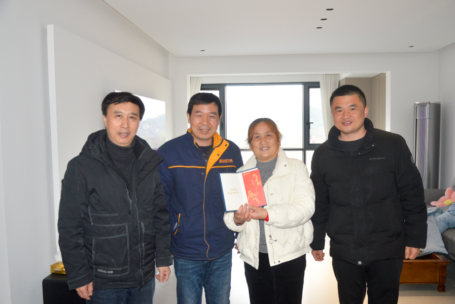 岁初春寒,温情不减。为感谢十年老员工与企业风雨同舟的坚守,2月15日,山水节能特别开展"老员工家属暖心慰问行动"。总裁办,管委会,员工所在部门领导受公司委托携奖状与新春祝福,走进四位优秀员工家中,将公司的关怀与敬意传递到每一位员工家属心间。