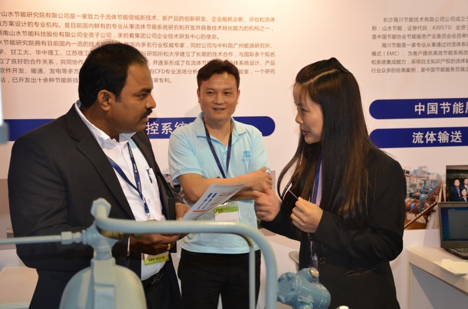 山水集团的海川节能目前是我国节能服务的百强企业,是我国流体节能服务领域的先驱,一直致力于我国流体节能EPC业务的推广和实施。本次会展不少客户对海川节能EPC项目的“零投入、零风险,100%回报”的业务模式产生了极大兴趣,这种新型的合同能源管理业务模式必定给现在作为能源消耗、浪费巨大的我国节能市场带来一场革命,海川节能营销部部长陈俭运用众多经典案例为客户详细讲解业务历程及操作模式,得到了客户的广泛认可及合作意向。