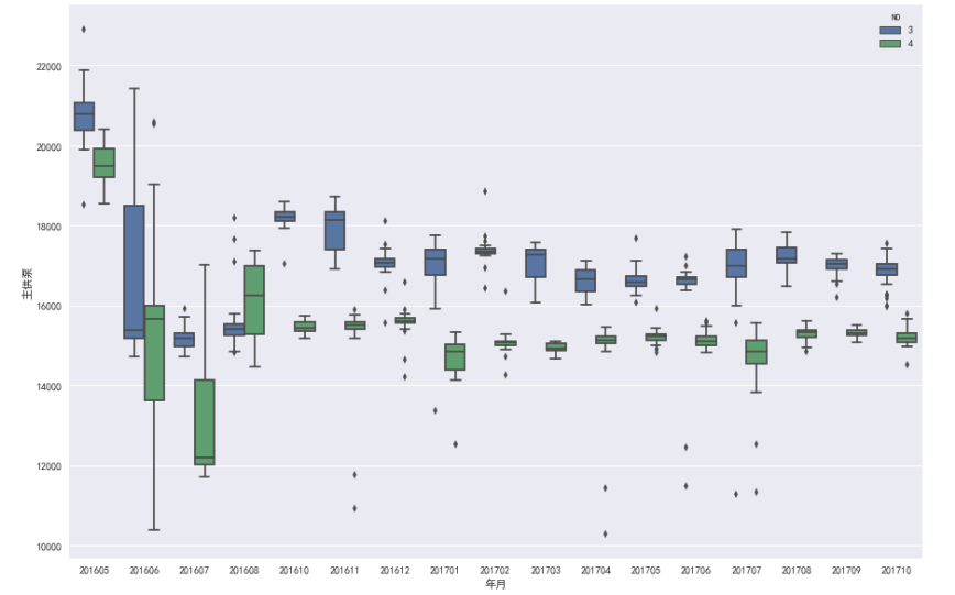 选取待展示的参数,使用箱线图绘制每月的耗电分布情况,见图3所示;根据需要,也可以选取属于同一类别的两个或两个以上参数进行对比,见图4所示。
