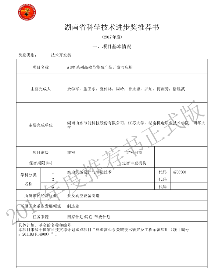 拼搏在线平台登录入口、江苏大学、湖南机电职业技术学院、西华大学完成的AS型系列高效节能泵产品开发与应用获得省科技进步奖。