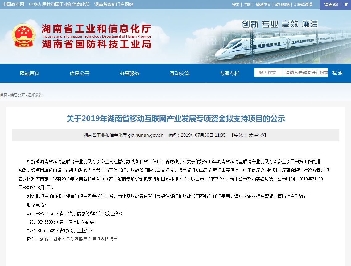 7月30日,根据《湖南省移动互联网产业发展专项资金管理暂行办法》和省工信厅、省财政厅《关于做好2019年湖南省移动互联网产业发展专项资金项目申报工作的通知》,经项目单位申请,市州和财政省直管县市工信部门、财政部门联合审查推荐,项目资料初审及专家评审等程序,省工信厅会同省财政厅研究提出建议方案并报省人民政府审定,2019年湖南省移动互联网产业发展专项资金拟支持项目公示中拼搏在线平台登录入口获“基于大数据分析挖掘的高炉循环水节能专家数据集成系统的研发与应用”专项资金的支持。