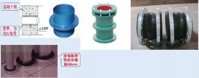 4 、消防水泵出水管道穿越外墙时,应采用防水套管;当穿越墙体和楼板时,应加设套管,套管长度≥墙体厚度,或应高出楼面或地面50mm;套管与管道间隙应采用不燃材料填塞,管道的接口不应位于套管内;