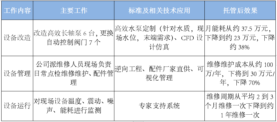 柳钢热轧2032线循环水系统旋流井工艺段,有7台水泵,其中包括5台抽水长轴泵,2台冲渣泵,设备年代久远,故障率频繁及运行成本高,给用户带来了很大的困扰,柳钢在积极寻求解决方案。我司获得信息后,结合柳钢热轧的实际情况经过实地的调研,出具了托管方案。